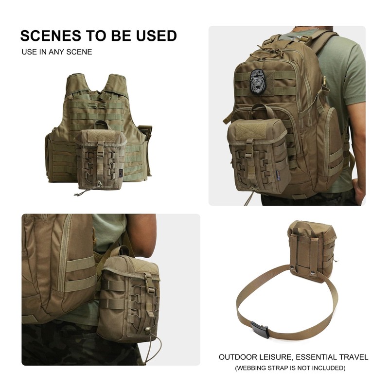 Mit 601D Polyester Material, ist es langlebig, widerstandsfähig gegen Verschleiß und Abrieb. Es hat eine kompakte Naht, die praktische Schnalle für die Handyhülle und Reißverschlüsse, die sich leicht schließen und öffnen lassen. Es ist mit einem Aluminium-Druckknopf ausgestattet, der sich zuverlässig und einfach mit Ihren anderen taktischen Taschen oder Rucksäcken verbindet.