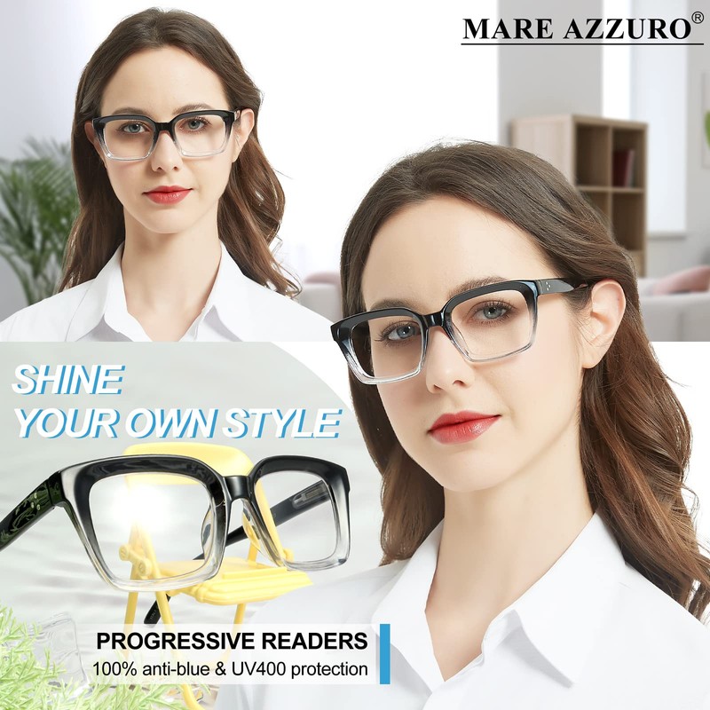 - Warm tips - reading area is smaller than ordinary full magnifying lens! Need 1 week to adapt it for the first time wearing! MARE AZZURO progressive reading glasses with blue light blockers, has accurate 1.00 1.25 1.50 1.75 2.00 2.25 2.50 2.75 3.00 3.50 strength for selection, classic style, excellent crafted.