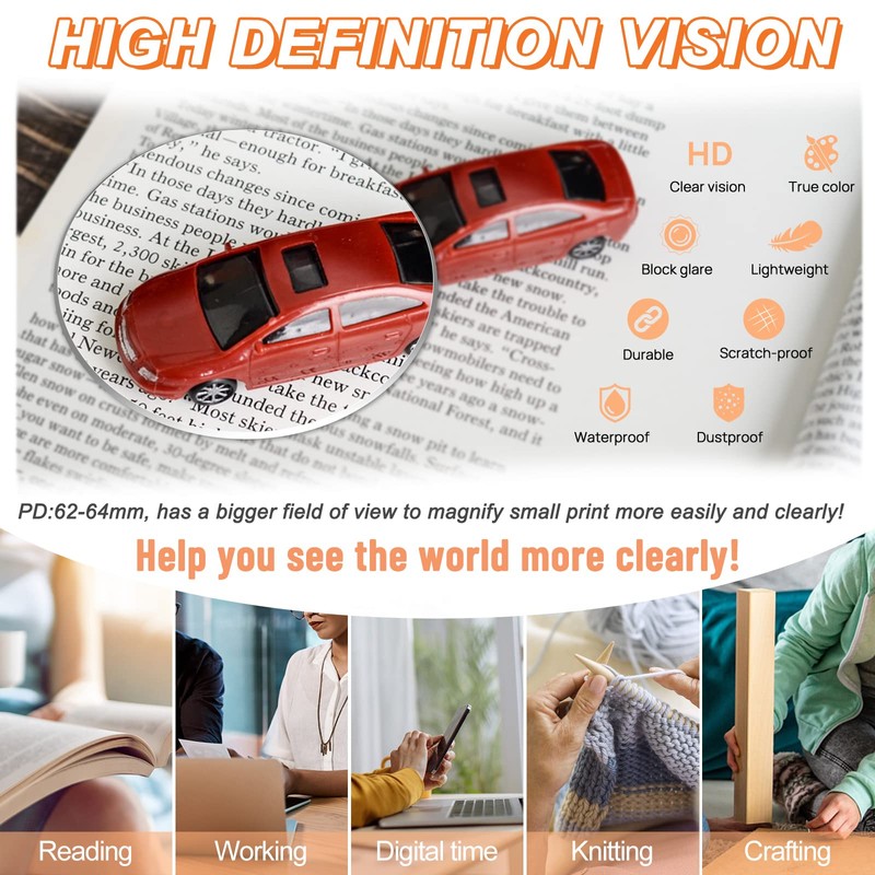 Women's oversized magnifying glasses for reading, working, gaming, playing phone,watching shows, video meeting, doing sewing, knitting, holiday, party, traveling, walking, shopping.