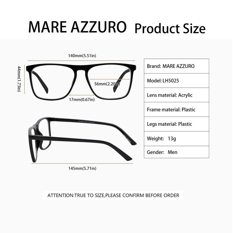 MARE AZZURO Reading Glasses Men 's Square Readers 0 1.0 1.25 1.5 1.75 2.0 2.25 2.5 2.75 3.0 3.5 4.0 5.0 6.0 (Black 100)