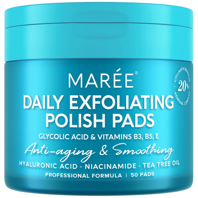 MAREE Glycolic Acid Polishes - Toner Pads for Face Cleansing - Tea Tree Oil, Salicylic Acid & Vitamins E, B3, B5 - Facial Peel & Radiance Deep Cleaning Effect - 50 Count