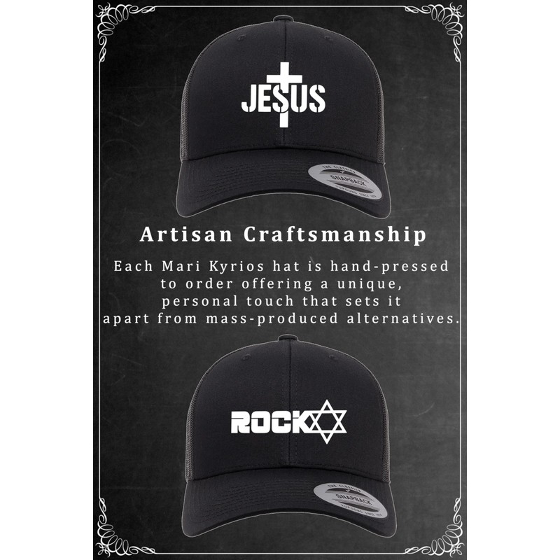 Mari Kyrios Hand-Pressed Hats. Exclusive, statement-making, artisan-crafted. Discover the bold style and handcrafted quality of Mari Kyrios hats, exclusively from KMG Brands. Each hat is individually hand-pressed, blending modern edge with timeless streetwear attitude. From gritty concert vibes to everyday statement pieces, Mari Kyrios designs elevate your look with originality and purpose. Whether you’re rocking out at a metal show or turning heads downtown, these hats are built for those who don’t follow trends - they set them. Unique hand-pressed designs offer authentic, one-of-a-kind style. The hats provide a durable, comfortable fit with premium materials and are inspired by music, street culture, and fearless individuality. They are perfect for concerts, streetwear fashion, and casual statement looks.