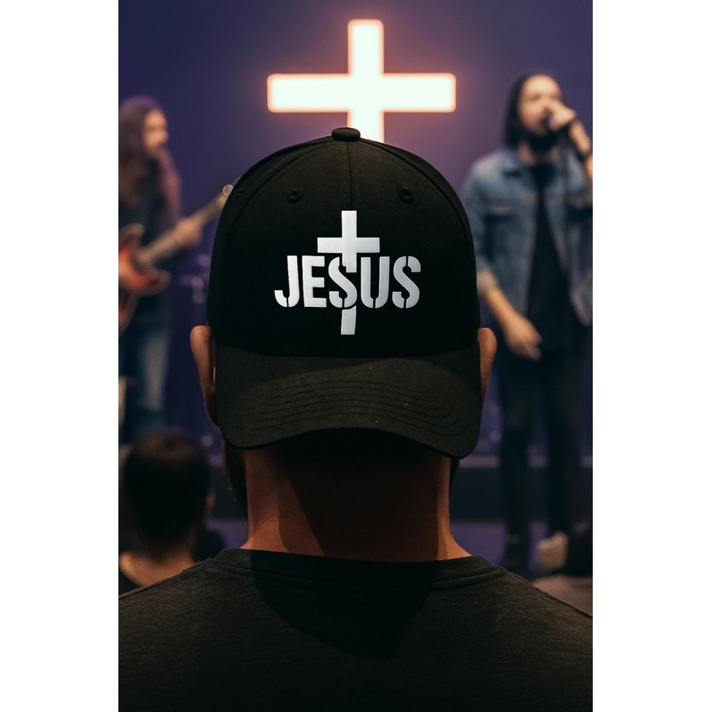 Mari Kyrios Christian Hat 3 Nail Cross Heart Side Heat Pressed Black on White...