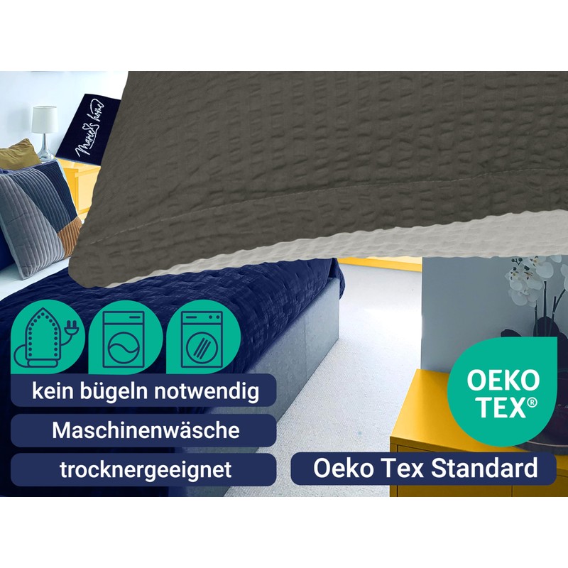 Marie´s Home Seersucker Bed Linen 135 x 200 cm Cooling Bed Linen 135 x 200 cm 2-Piece Set - Grey Bed Linen - Duvet Cover + 1 Pillowcase 80 x 80 cm - Summer Bed Linen 1616.2356, 135 x 200 cm,