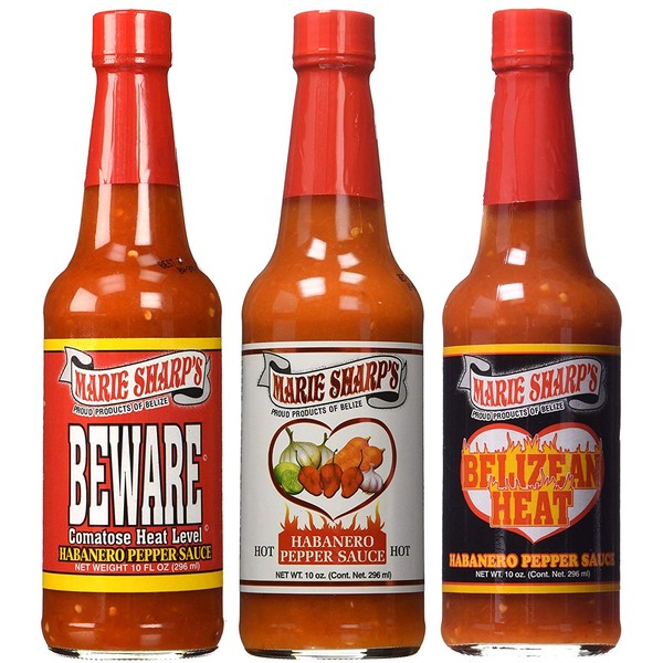 Marie Sharp's HOT HABANERO BEWARE COMATOSE and BELIZEAN HEAT Pepper Sauce 10oz