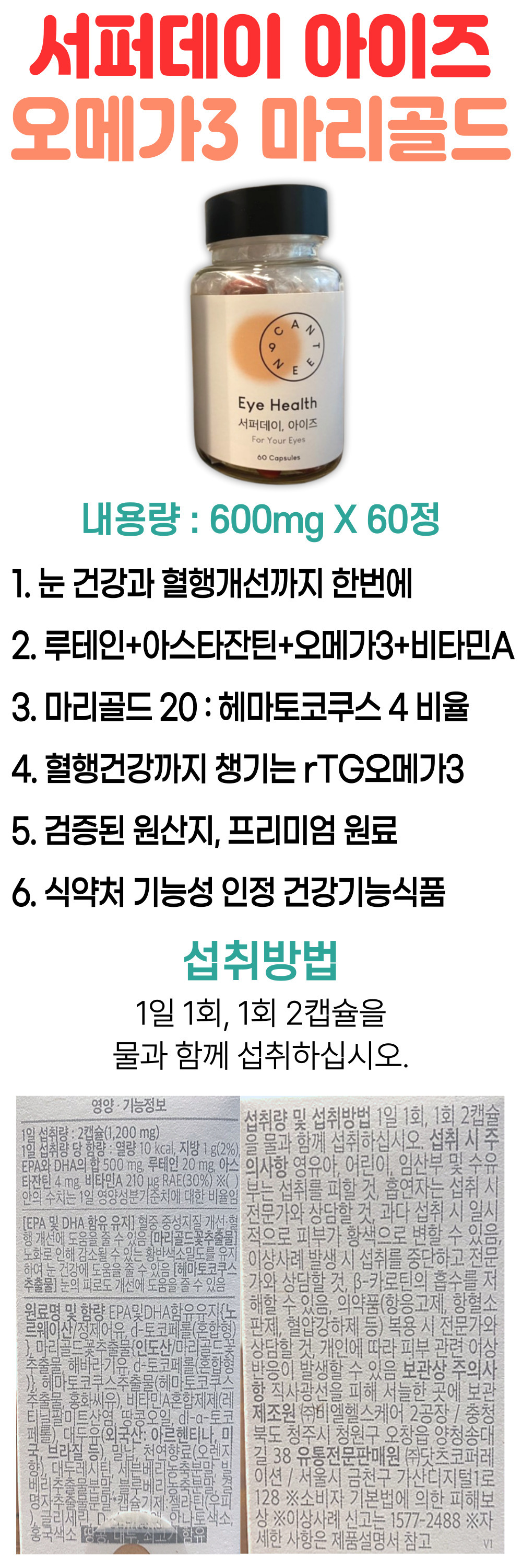 마리골드 눈 건강 보조제 서퍼데이 아이즈 rTG오메가3 알티지 오메가쓰리 오메가3 루테인 헤마토코쿠스 아