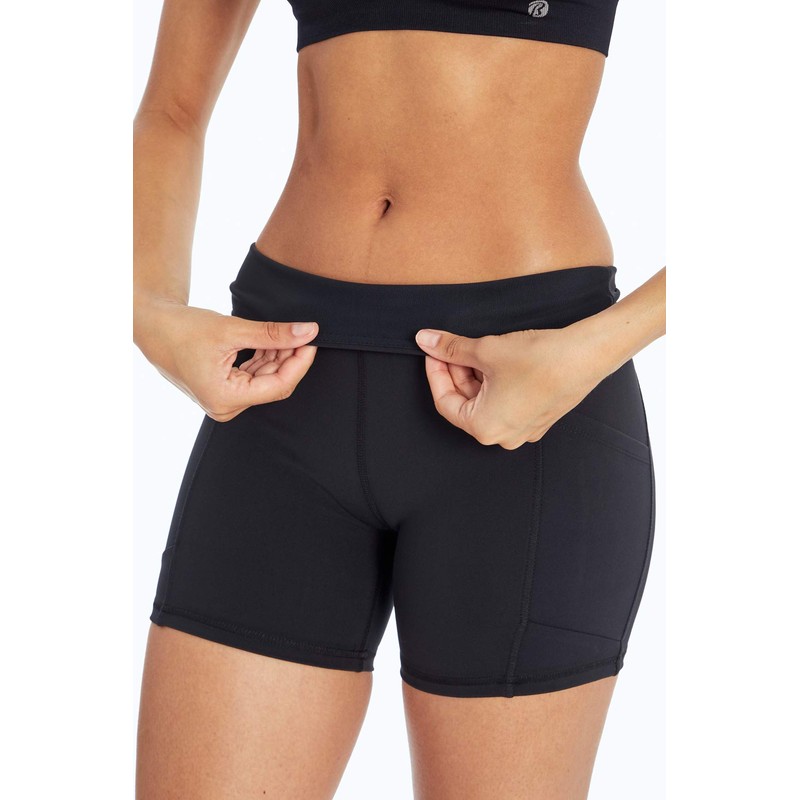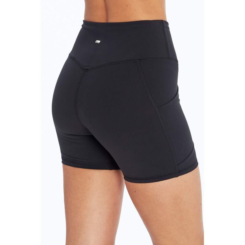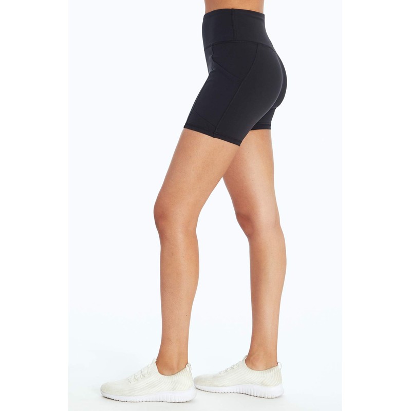 - High waist short with 4" curved tummy control waistband and lined powermesh for added support and slimming compression.