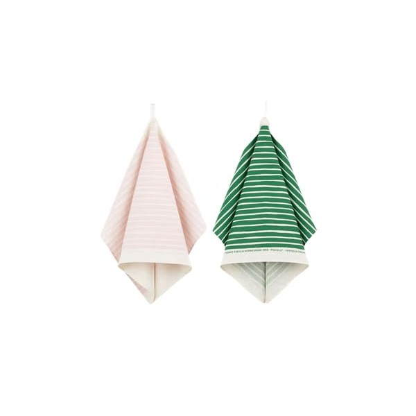 Marimekko Piccolo Tea Towel, Pack of 2, Green, Pink, White