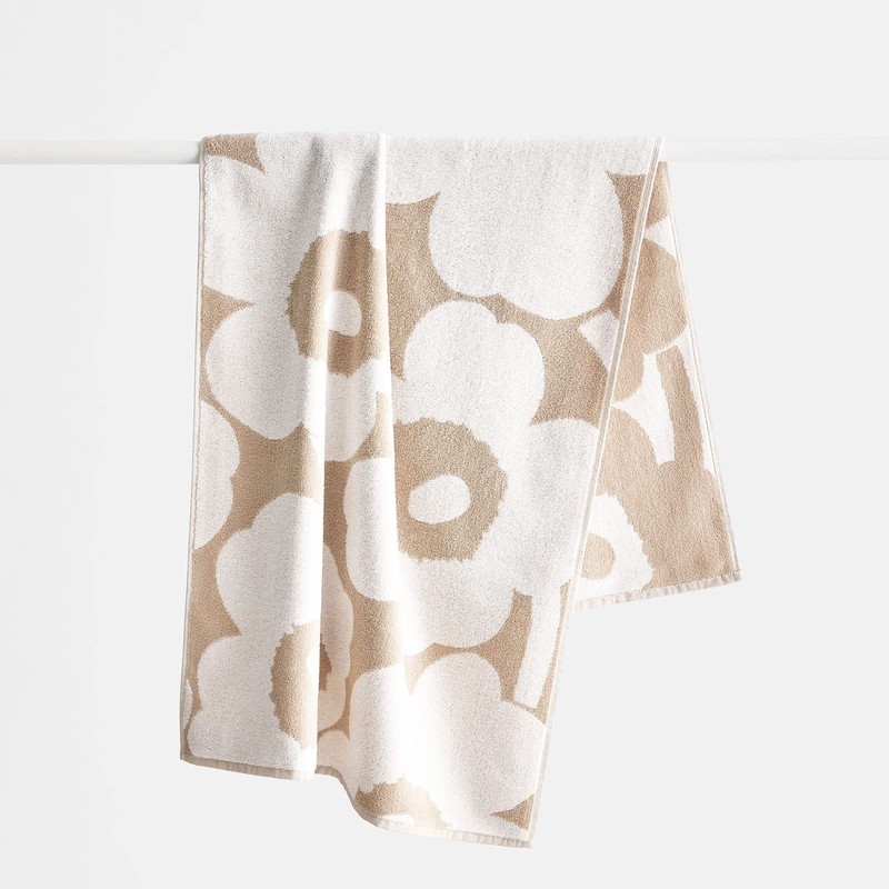 - Marimekko Unikko Towel - Beige, White - Unikko Face Towel Beige, White (12" x 12"). Marimekko’s famous poppy pattern Unikko was born in 1964 in a time when the design house’s collections featured mostly abstract prints. Designer Maija Isola wanted to create something interesting from this organic theme and designed an entire range of floral prints. Today, the iconic flower represents creativity.