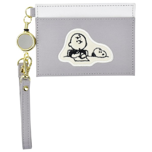 Marimocraft snoopy0481 Snoopy Pass Case, Commuter Pass Case, Reel Included, Applique Card Case, Simple, Compact, gray (SPIK-354)