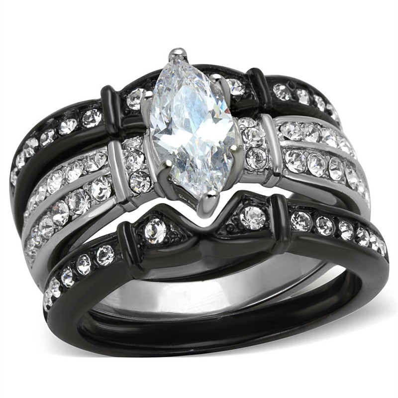 Marimor Jewelry 2.5 Carat Marquise Cut Zirconia Black Stainless Steel Wedding Ring Set Women's Size 6