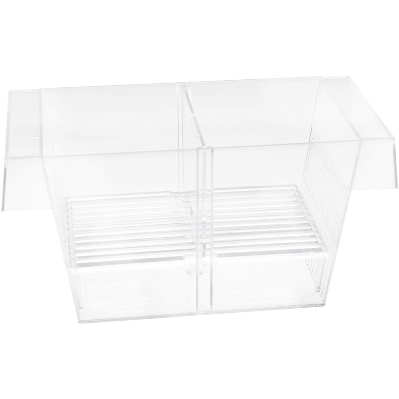 - Bottom compartment safely collects and protects falling fry
