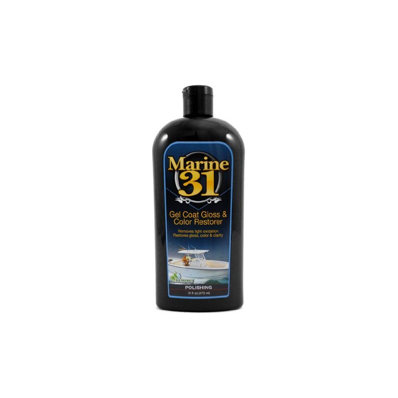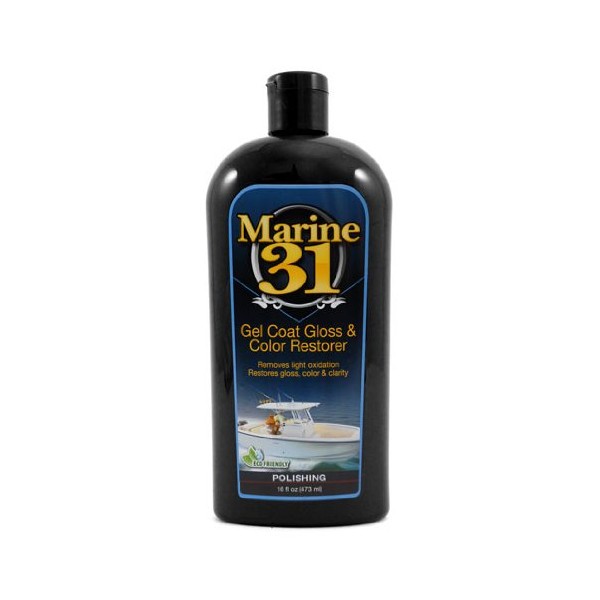 - Marine 31 Gel Coat Gloss & Color Restorer quickly and effortlessly removes medium oxidation, yellowing and surface staining from your boat while maximizing gloss and color.