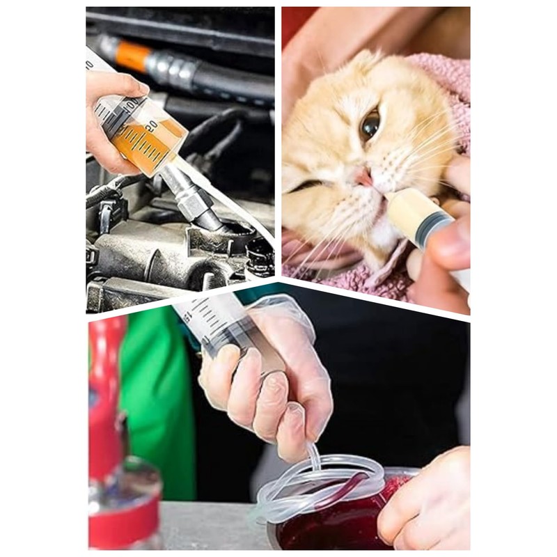 Marine Aurora Large Syringe with Tube, Plastic Syringes, Reusable Liquid Syringe,Nurse,Animal Care, Measuring Syringe for Industry Laboratory Pets Feeding Watering Oil - 100ml 60ml 20ml