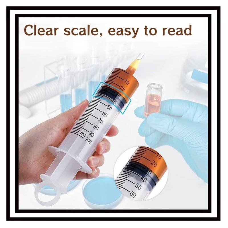 - [Easy to Read] Our syringe has a clear easy-to-read barrel that ensure precise measurements, Suitable for the transfer configuration of a variety of liquids.
