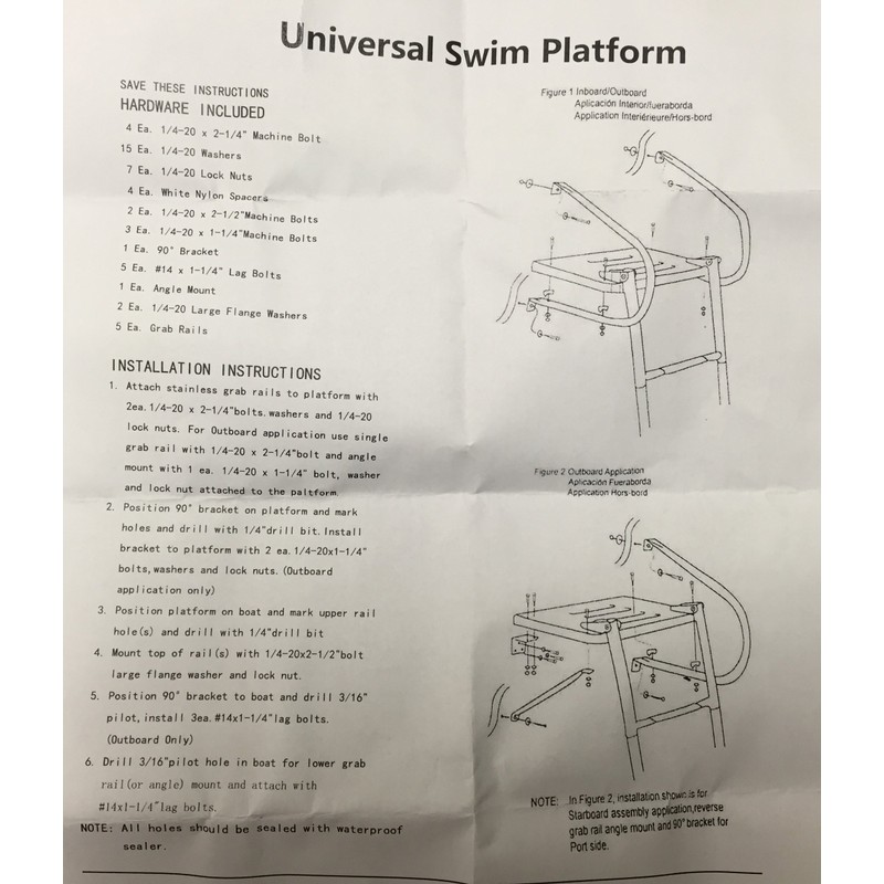 - Hardware included for both inboard and outboard applications. Velcro Strap included to stow ladder. Weight Capacity: 300 lb. Instruction included with the package.