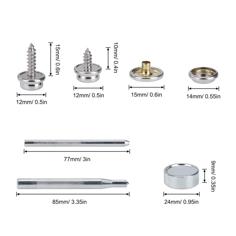 - High quality marine grade canvas and upholstery button set. Marine snap kits are made of stainless steel and are rust resistant in salt water applications and last for a long time. Canvas knobs are often used for tarpaulins, tarpaulins, tents, canopies, tarpaulins, garden furniture, etc. - These replacement press studs can be connected to wood, plastic and fibreglass and provide excellent rust resistance for indoor and outdoor use.