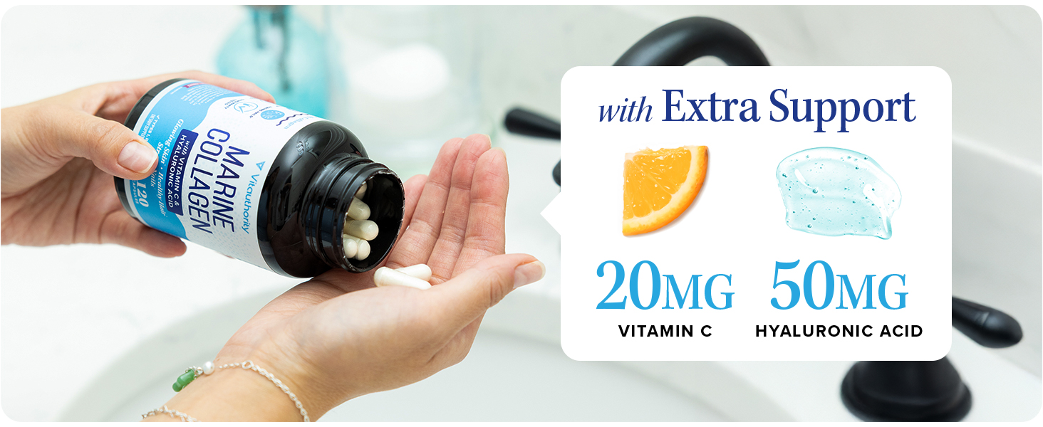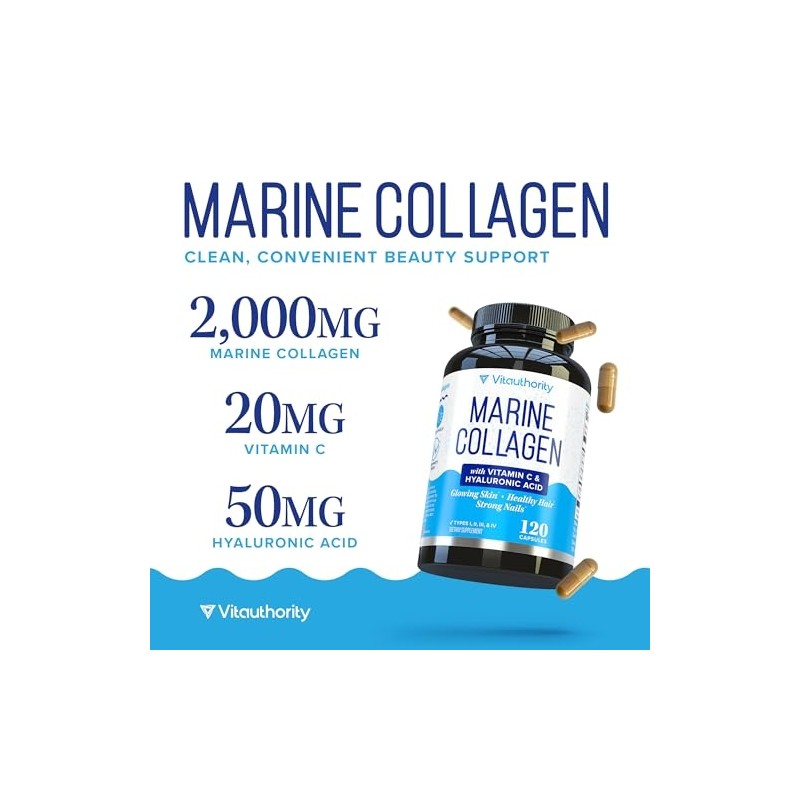 - Convenient Beauty & Wellness Support: Each 4-capsule serving delivers 2,000mg of hydrolyzed marine collagen peptides, plus Vitamin C and Hyaluronic Acid — no mixing or powders required.