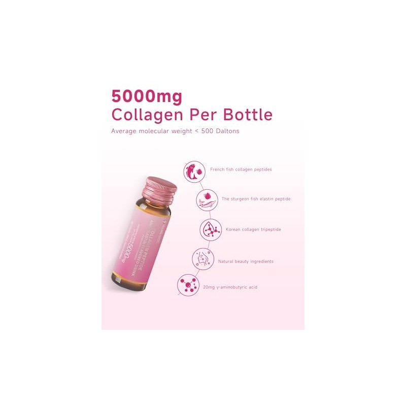 - Better Absorption & Raw Material Advantages: 5000mg of imported French hydrolyzed collagen has French biological enzyme hydrolysis technology, with better activity and easier absorption. The golden ingredient, bonito elastin, is as expensive as gold. The imported Korean collagen tripeptide is a small - molecule substance that is quickly absorbed. The average molecular weight is <500 Daltons (ps: Dalton is the unit of molecular weight). Research shows that only collagen peptides with a molecular weight of less than 1000 Daltons can be directly absorbed and utilized by the human body.