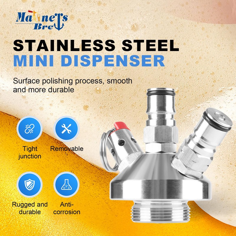 - Premium Material & Compatibility The Marinersbrew Mini Keg Dispenser integrates a stainless steel double ball lock system with a 10.82" stainless steel hose, ensuring flawless integration with 5L mini kegs. Unlike odor-retaining silicone alternatives, our corrosion-resistant steel hose preserves beer flavor integrity, resists wear, and prevents kinks or leaks for a consistently crisp pour. Engineered to maintain carbonation and freshness effortlessly