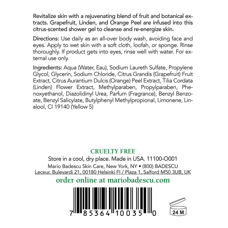 Mario Badescu Citrus Body Cleanser - Lightweight Shower Gel Soap with Grapefruit and Orange Peel Extracts - Fresh and Moisturizing Body Wash for Men and Women, 16 Fl Oz