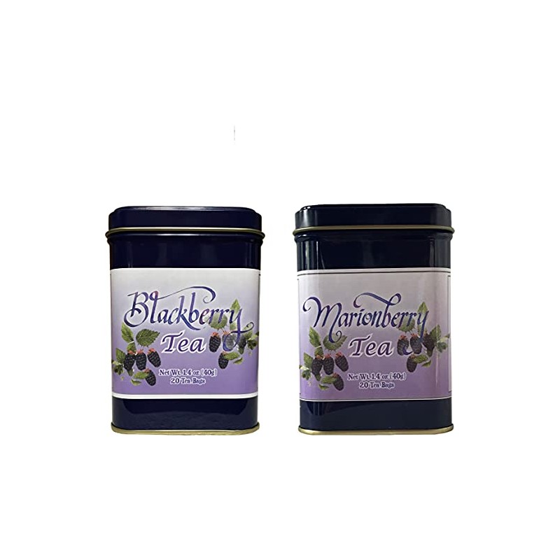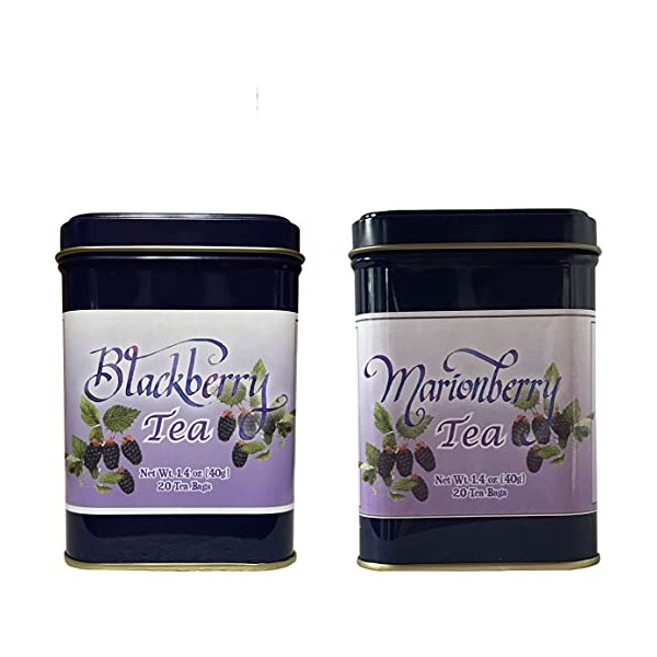 - 2 tins of Black Ceylon Tea with 2 different flavors - Wild Marionberry and Wild Blackberry Flavor, Each tin contains 20 tea bags