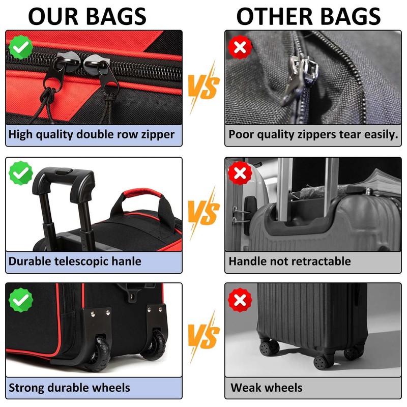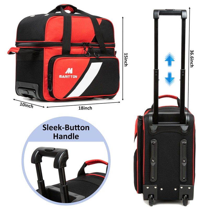 - Rolling Bowling Bag with Handle - The bowling bag equipped with a button on the handle to adjust the height, the premium retractable handle (with button lock) can extend up to 36.6inch(93cm) for desired height and easy transportation.