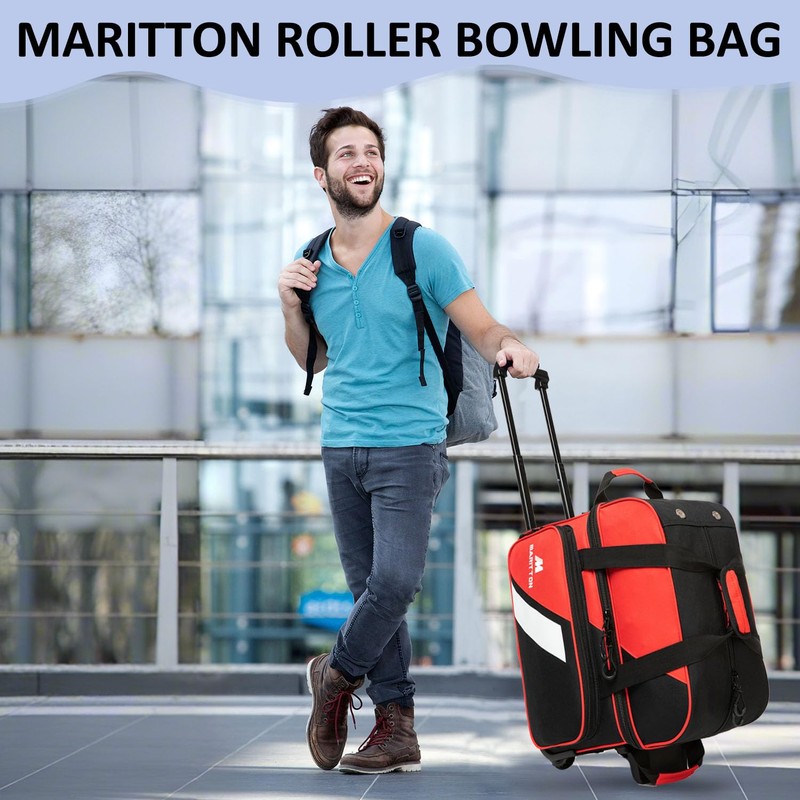 MARITTON Double Roller 2 Ball Bowling Bag with Large Separate Shoe Compartment and Retractable Handle.