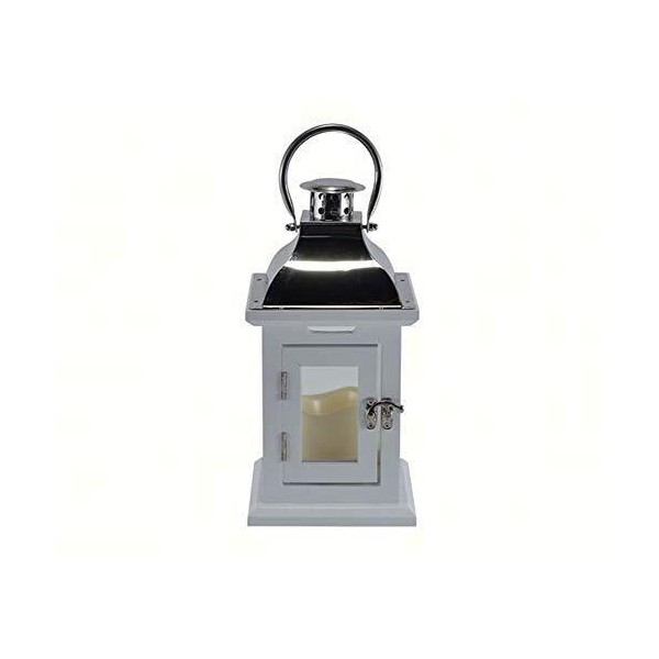 Our White Wooden Carriage Lantern is the perfect addition to centerpieces and table displays for weddings, special events, or home decoration. This 11-inch lantern comes with a silver metal roof and handle, making it convenient to hang from a hook or rest on a tabletop. Additionally, the candle includes a built-in 6-hour timer. Once activated, the candle will automatically illuminate at the same time each day and stay lit for six hours.