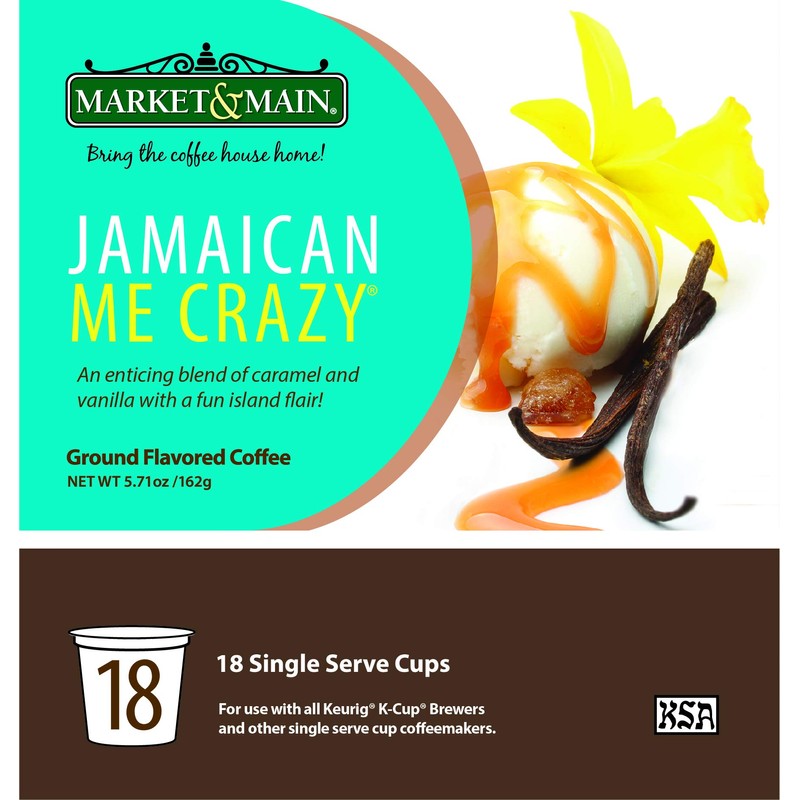 Market & Main Single Serve, Jamaican Me Crazy Cup Coffee, Compatible with Keurig K-cup Brewers, 18 Count