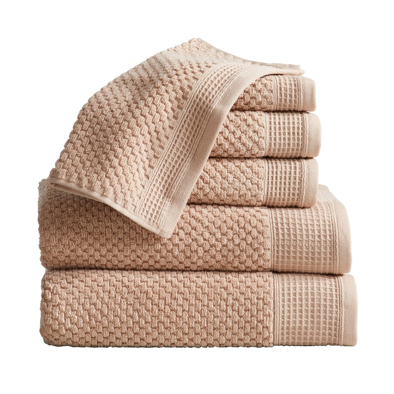 Market & Place 100% Cotton Waffle Textured 6 Piece Towel Set| Super Soft Quick Dry Bath Towels | Decorative Towels for Bathroom | 2 Bath Towels, 2 Hand Towels, 2 Washcloths | Belle Collection (Beige)