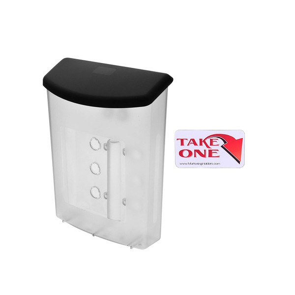 - Great outdoor advertising tool for anywhere - outdoor or indoor! Includes: Frosted Literature Holder with Black Lid, mounting hardware and one “Take One” sticker Proudly made with high quality plastic Marketing Holders outdoor flyer holders make sure you never miss out on potential customers. Simply mount your outdoor box outside your brick and mortar business