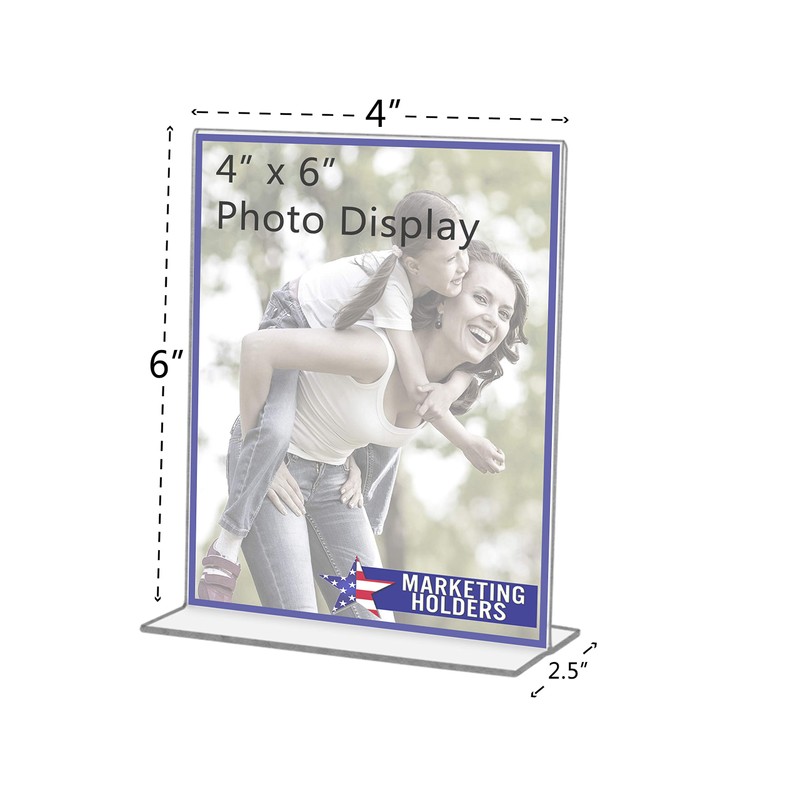 - Bottom-loading; center base slot allows insertion of 4”W x 6”H printed material