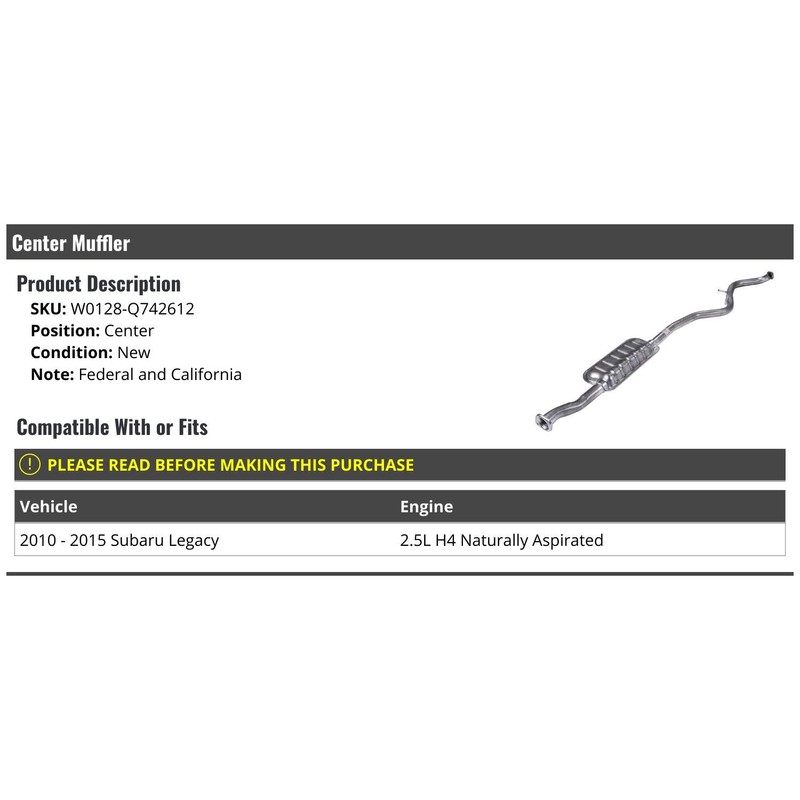 Marketplace Auto Parts, Center Muffler - Compatible with 2010-2015 Subaru Legacy 2.5L H4 Naturally Aspirated