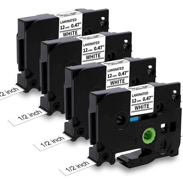 - Compatible with Brother P Touch 0.47 inch 12mm Tze TZ 231 label tape. Colour: black on white. Size:12mm x 8m Quantity:4 Packs