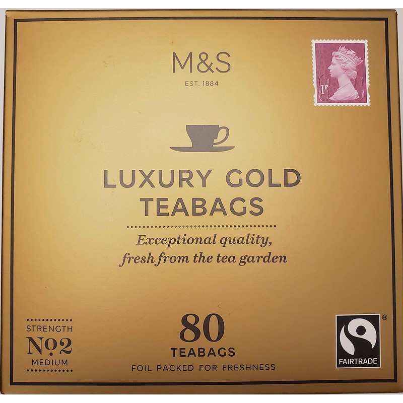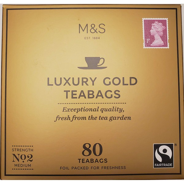 • Product must match image. M&S Luxury Gold Range 80 Teabags. Taste luxury gold is unlike no other tea, with a true tea flavour - fully, yet naturally smooth and sweet.