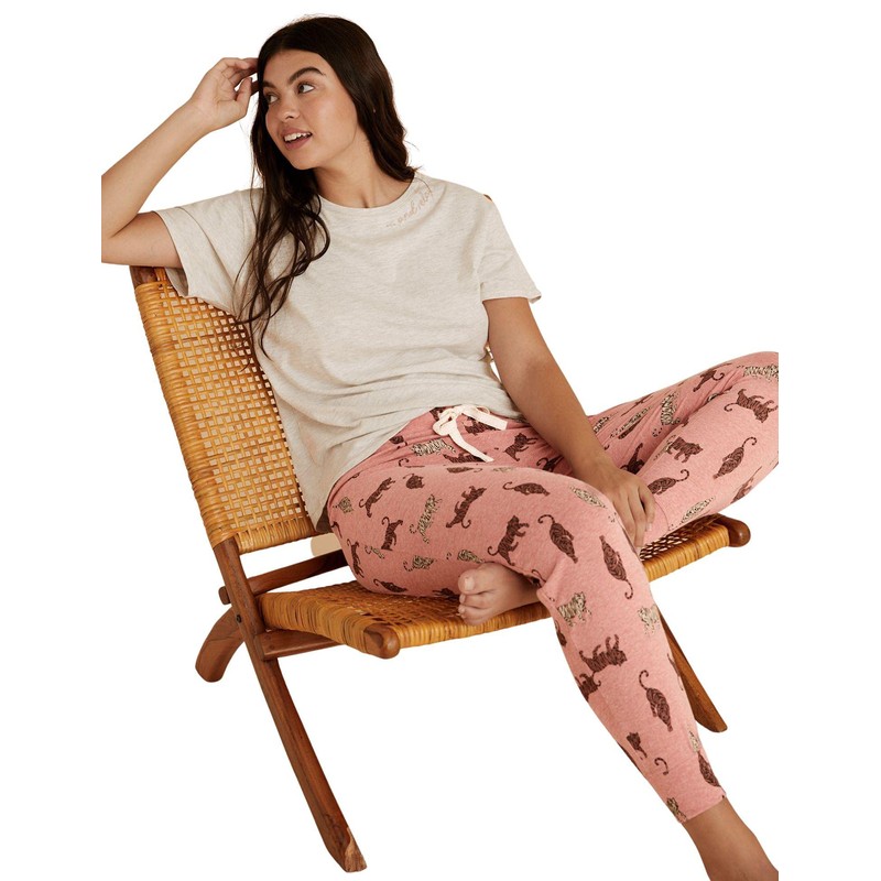 Marks & Spencer womens Super Soft Loungewear Tiger Print Cuffed Pajama Pant, Medium Pink, 2 Long