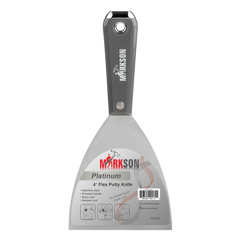 MARKSON Putty Knife 4", Scraper Tool Stainless Steel Blade, Paint Scraper with Nylon Handle Hammer End