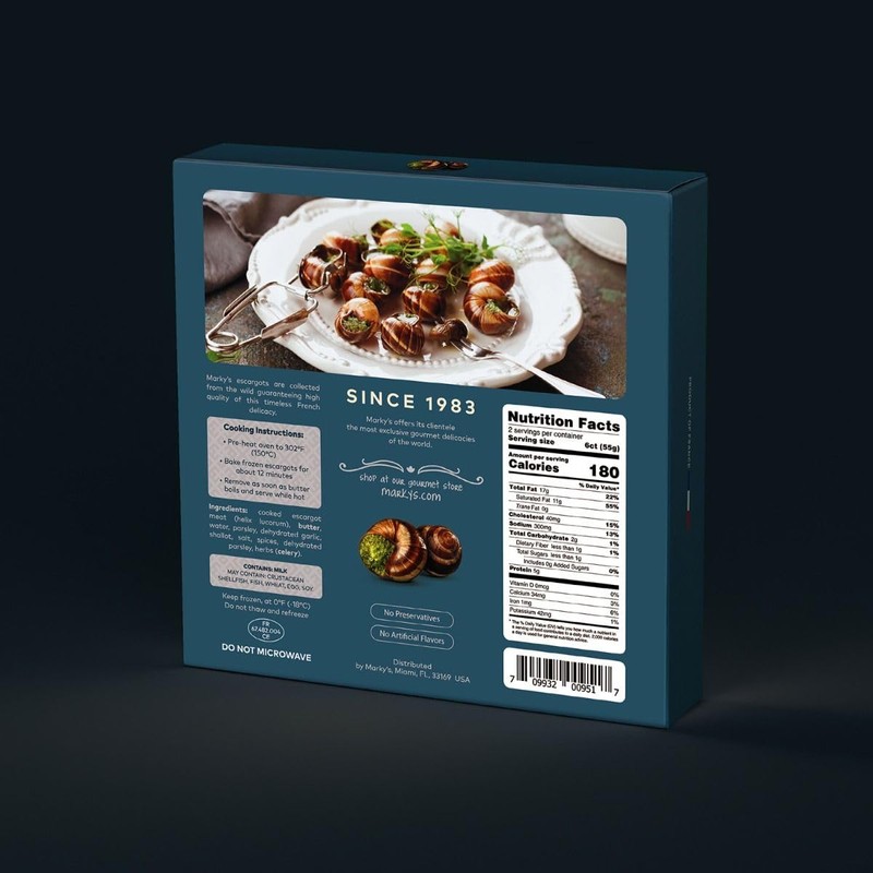 • Marky's Escargots Achatine with Garlic Butter are cooked to perfection and served with a savory garlic butter sauce. These delicious escargots are the perfect appetizer to add a bit of French flair to any occasion!