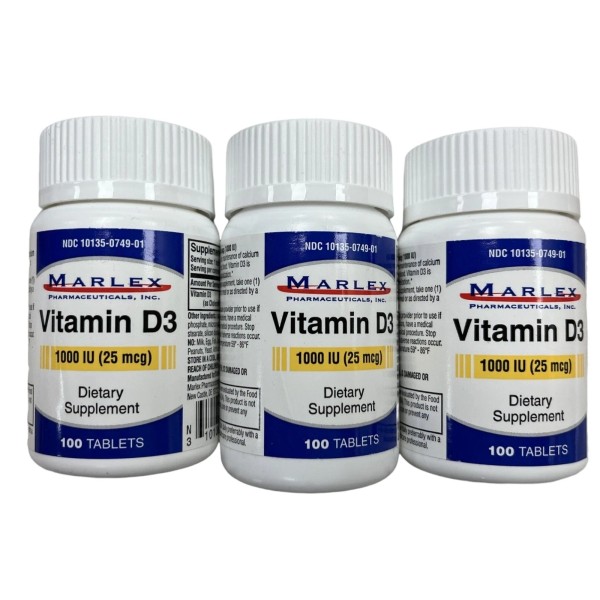 Marlex Vitamin D3 1000 IU (25mcg) 100 tablets ( 3 pack )
