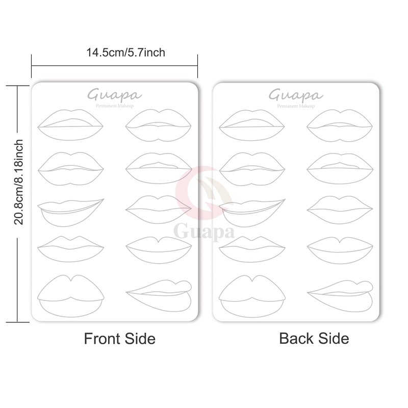 - Variety of Lip Shapes for Comprehensive Practice: Elevate your lip micropigmentation skills with our Double-Sided Lip Blush Practice Skin. Featuring 10 different signature lip shapes, this practice pad provides a diverse range of lip designs for comprehensive and detailed practice.