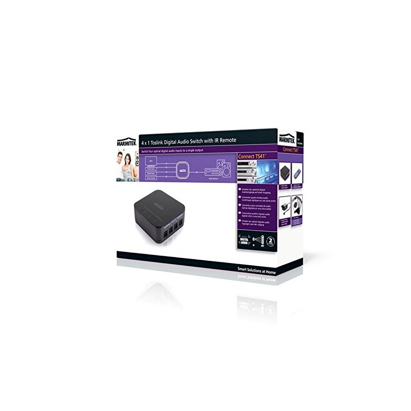- Use an older audio system – extremely practical if your audio amplifier has too few digital audio inputs. The Marmitek Connect TS41 has 4 inputs and 1 output.