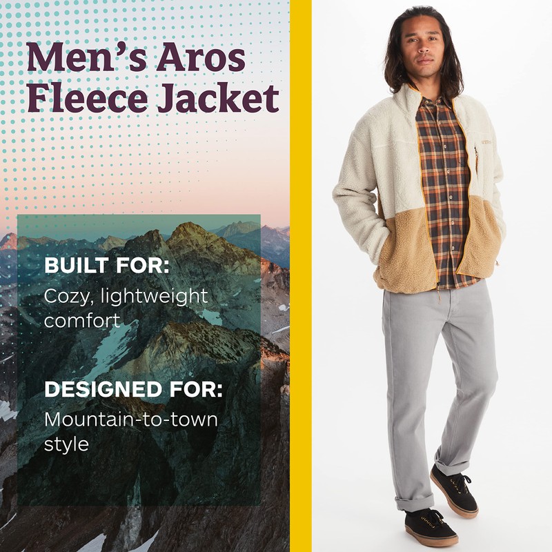 - Plush, Soft Warmth - Perfect for chilly fall hikes and campfire nights, the Marmot Men's Aros Fleece Jacket features plush polyester sherpa, high-pile fleece for warmth and retro style