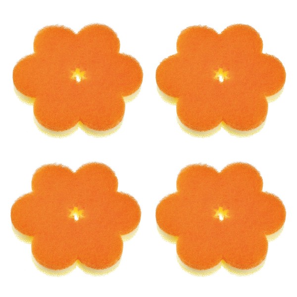 マーナ (marna) おはなスポンジ 4個セット (スポンジ 食器洗い/オレンジ) 半分に折って使える キッチンスポンジ (薄型 スリム) 食器用スポンジ R470O