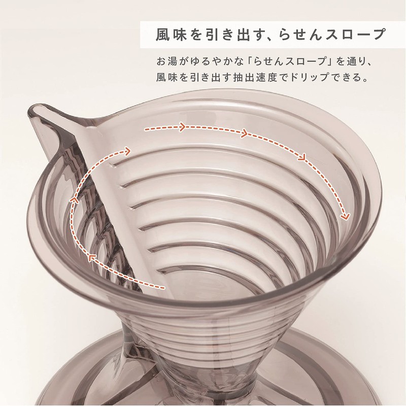 - (Improved Taste) The spiral slope allows you to drip at a speed that can easily bring out the delicious taste of your coffee. On the outside the coffee flows slowly as it rotates, so you can enjoy a professional taste just by pouring it around with hot water