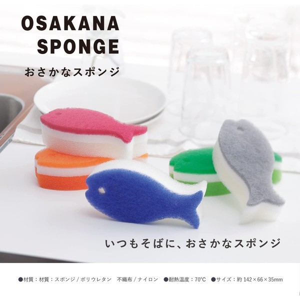 • 【サカナの形にはワケがある】手に馴染むおさかなの形のキッチンスポンジです。折り曲げればお皿のフチまでらくらく洗えます。コップの底も洗いやすい長めの形です。
