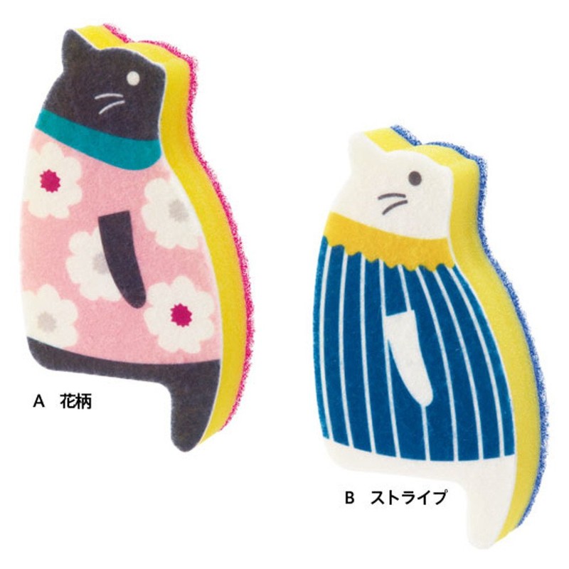 Marna K575A Sitting Sponge, Cat, Floral Pattern, 2.8 x 5.3 x 1.3 inches (7.2 x 13.5 x 3.2 cm)
