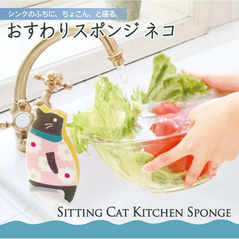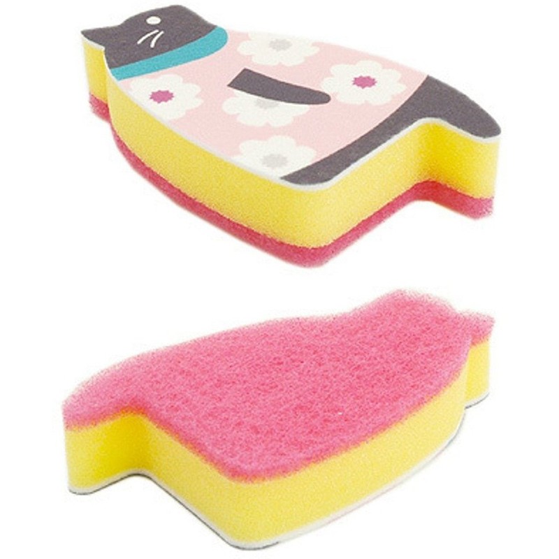 Marna K575A Sitting Sponge, Cat, Floral Pattern, 2.8 x 5.3 x 1.3 inches (7.2 x 13.5 x 3.2 cm)