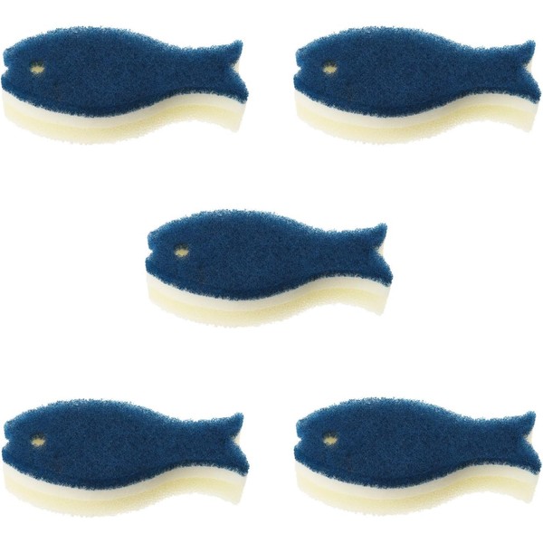 Marna Osakana Sponge R502NV, For Dishwashing, Fish Sponge, Kitchen Sponge, Kitchen Use, 3 Layer Structure, Set of 5, Navy