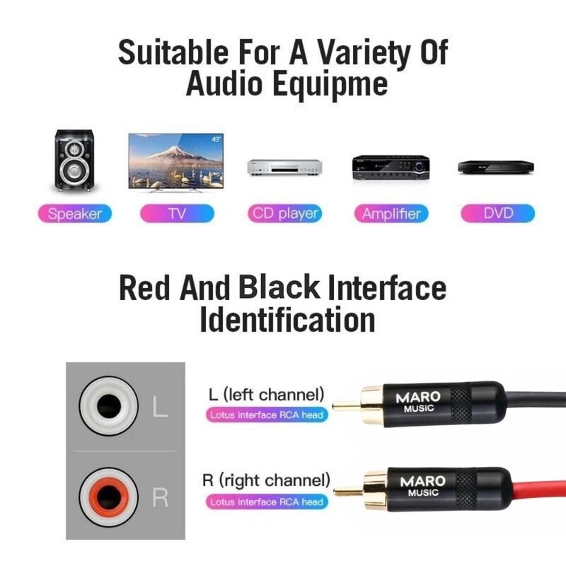 - Compatibility : Maro 2 RCA male to 2 Phono male cable supports all devices with an RCA audio connection, such as XBOX 360, PS3, Wii, DJ Controller, Home Theater Systems, Hi-Fi Amplifier, sound bar, turntable, gaming consoles, HDTV, A/V receiver audio, and more.